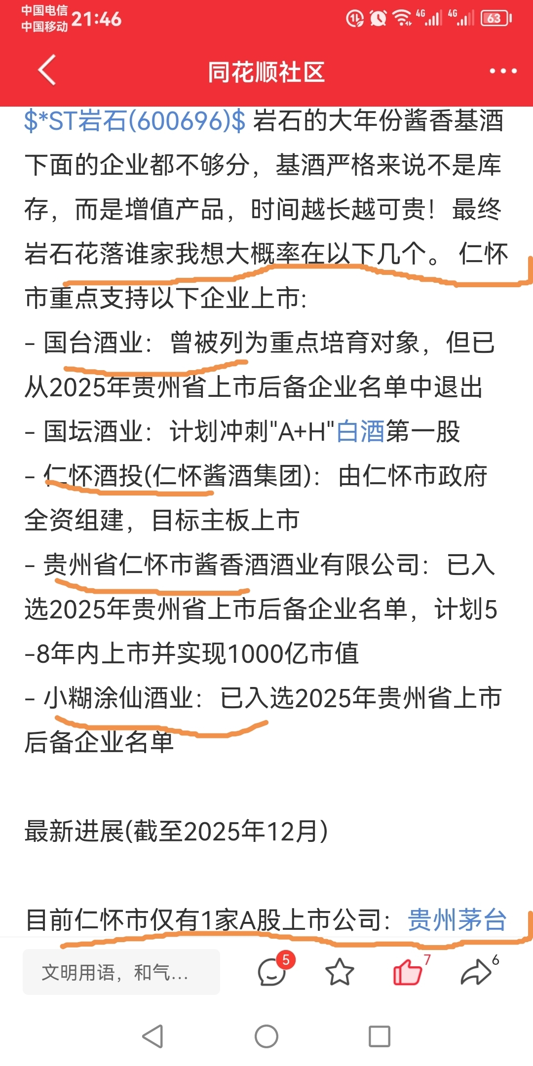 600696岩石,5亿元年份酱香型基酒出售,精准达标三亿元营业额保壳成功。贵州仁怀市五大备选上市酒企优先安排借壳上市!国内剑南春,西凤酒择优录取!