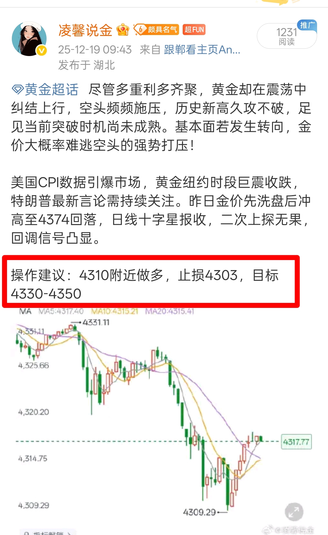 黄金亚盘策略落地4310果断哆,目标区间4335精准抵达!25个点稳稳拿下,盈利
