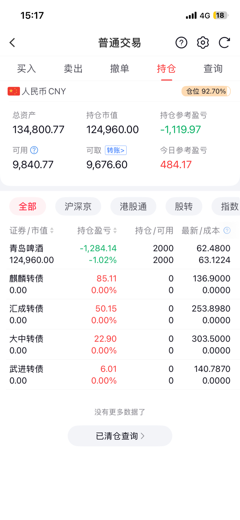 盘中小仓位买了转债,没赚多少就卖了,青岛啤酒持续小阳,等待小阴加仓或者中阳减仓,