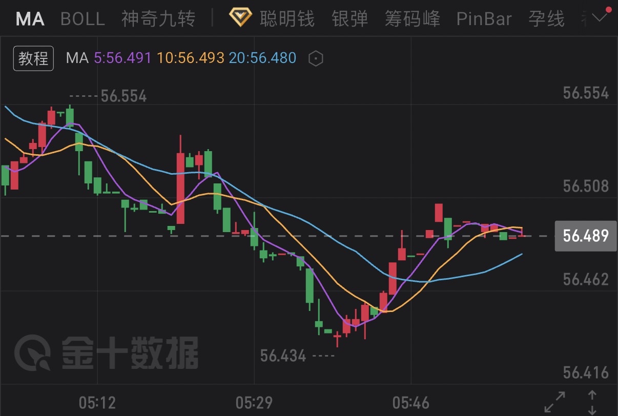 操作:55.8不破做多,56.8未破小止损空,上破则回落做多。