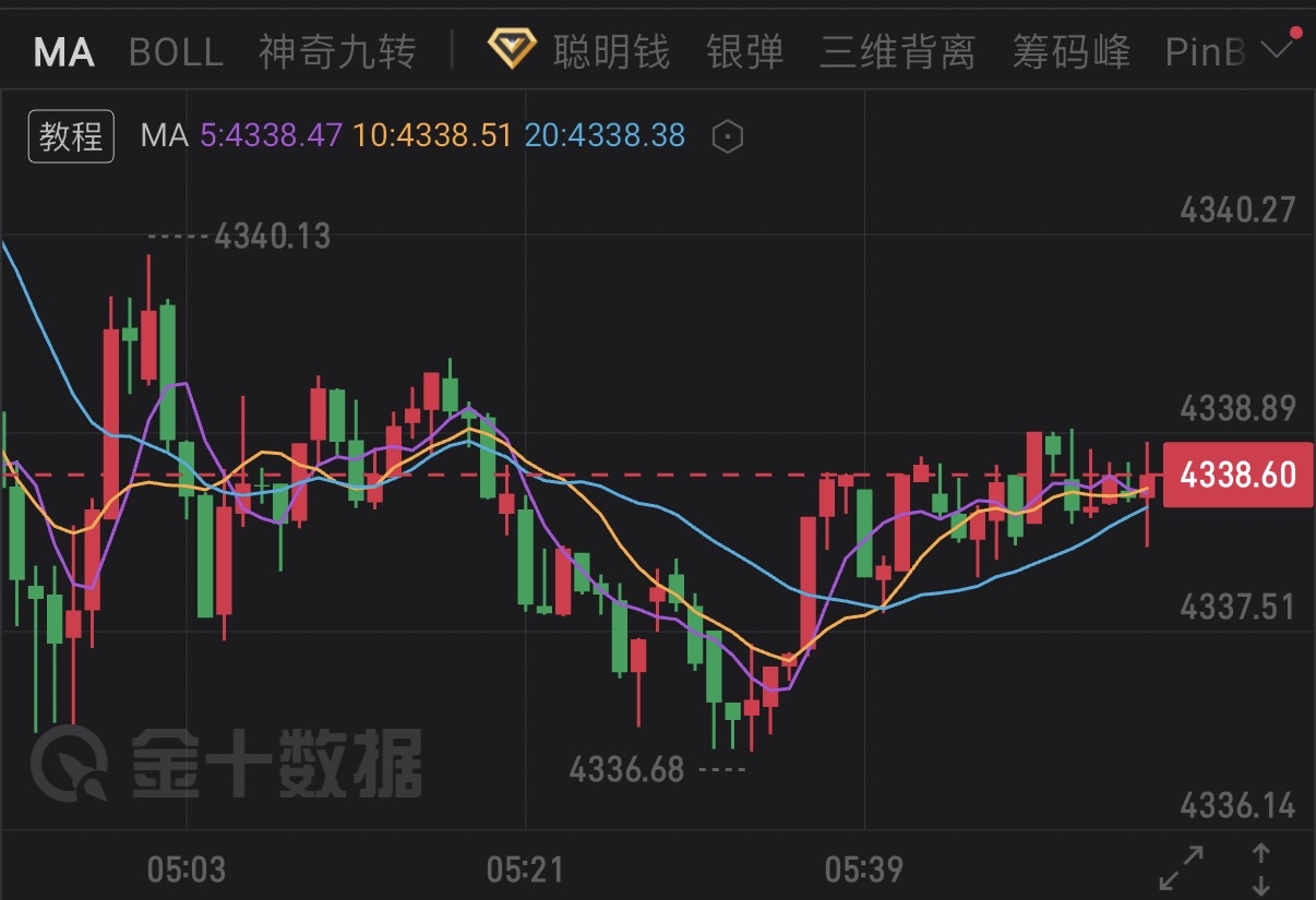 12月19日美盘现货黄金微涨0.3%至4338美元,本周有望累计涨0.6%,距历