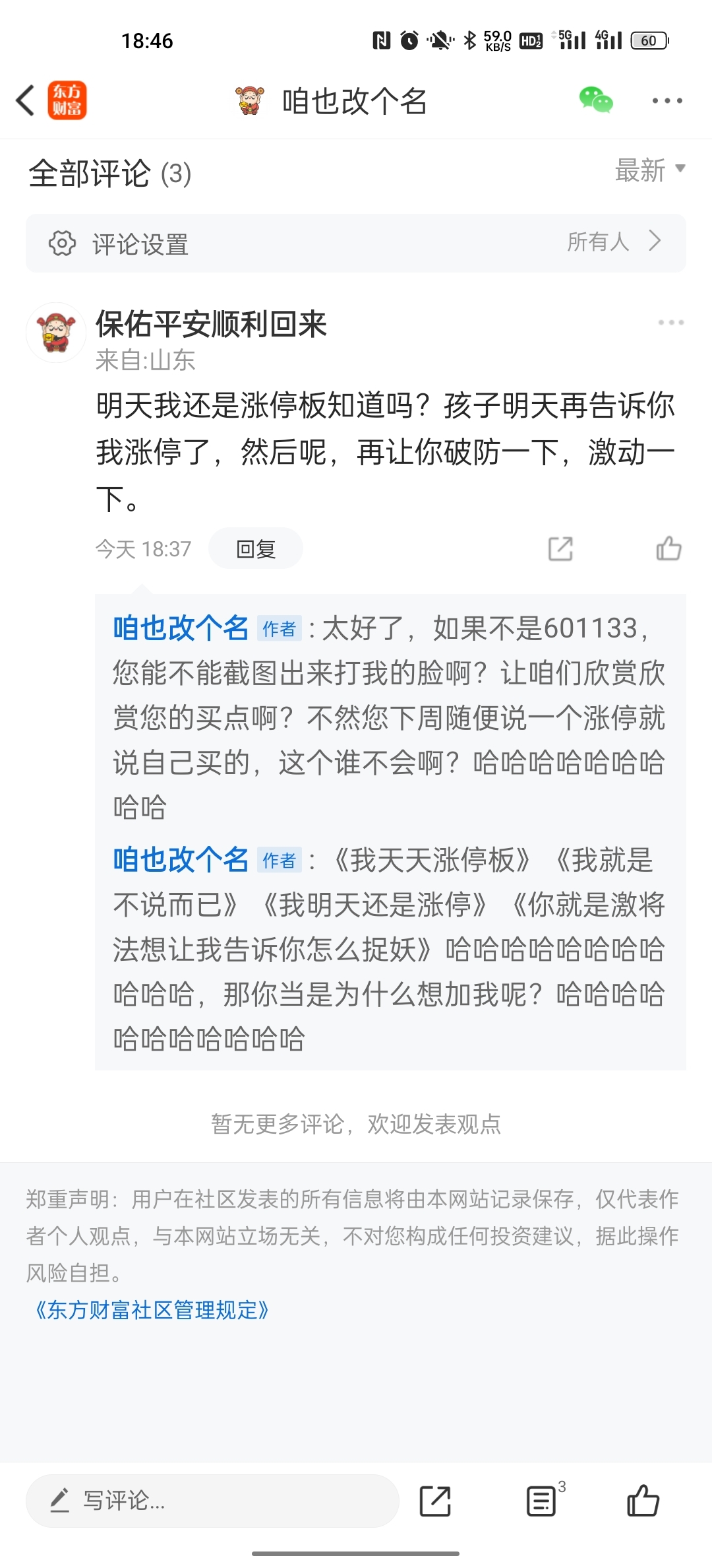 温馨提示: 1.根据《证券法》规定,禁止编造、传播虚假信息或者误导性信息,扰乱证券市场;2.用户在本社区发表的所有资料、言论等仅代表个人观点,与本网站立场无关,不对您构成任何投资建议。用户应基于自己的独立判断,自行决定证券投资并承担相应风险。《东方财富社区管理规定》