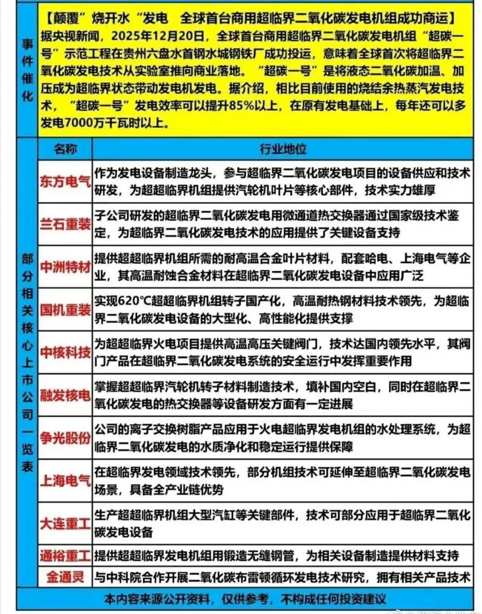 超临界二氧化碳发电概念股: