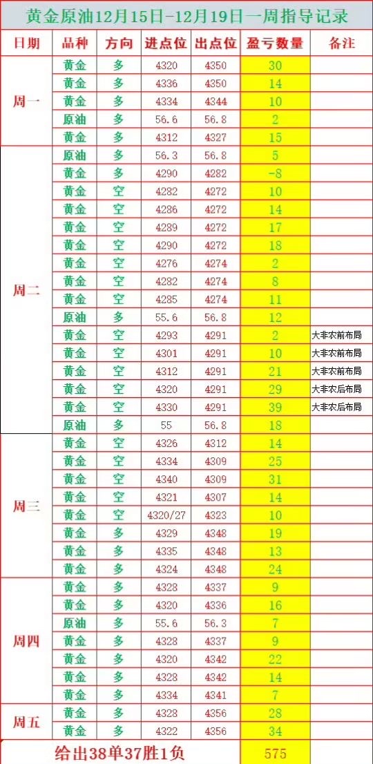 黄金原油周交易复盘(12.15-12.19)本周总共带单38笔,37笔盈利1笔亏