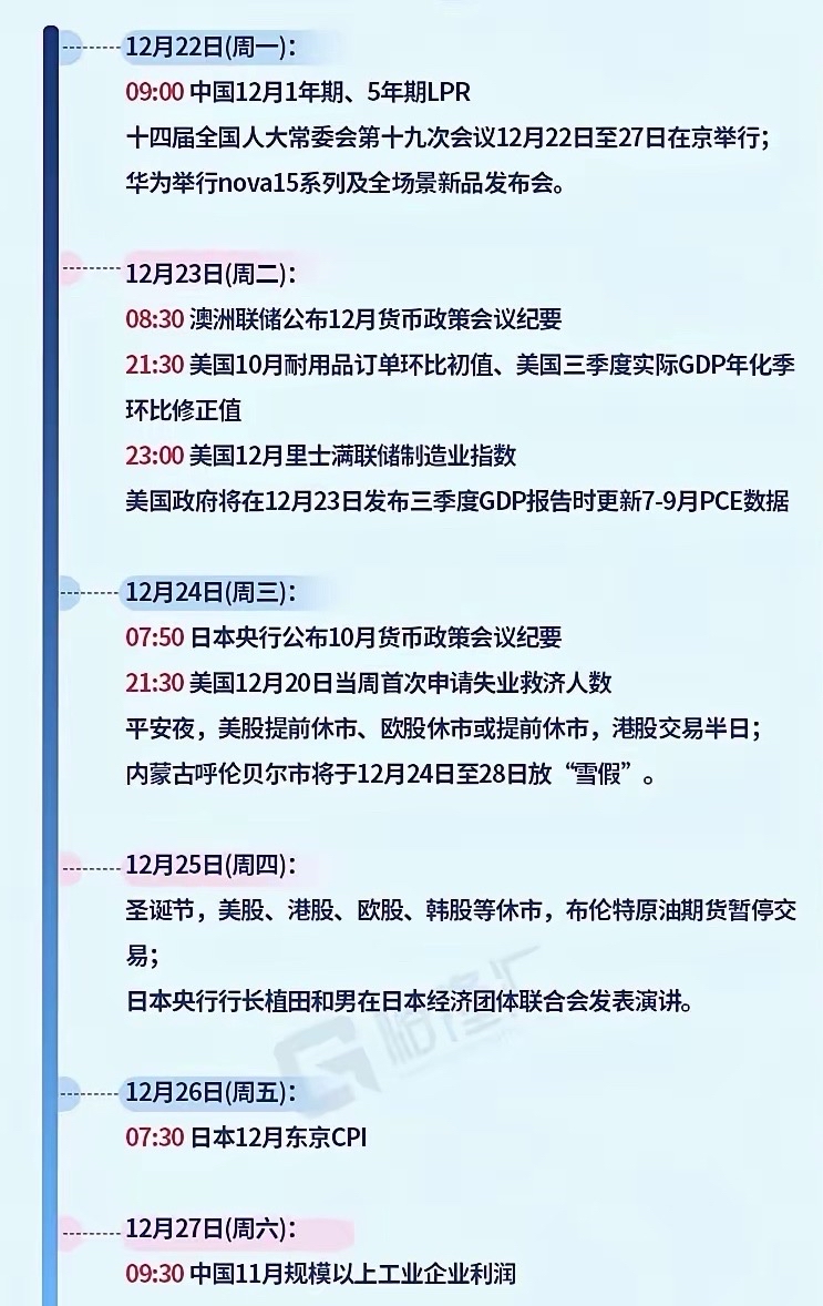 本周影响经济的事件一览周一:今天公布5年期LRP,直接影响A股的走向,不过现在市