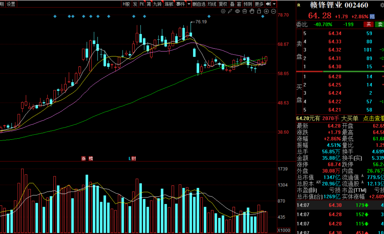 赣锋锂业002460,锂矿股,前期龙头股之一,前期回踩到60日线后明显有资金抄底迹象,一直在低位横盘,没有再创新低,它的表现比一般的锂电池股要稍强,明天行业有利好赣锋也反弹4.98%,放量突破20日线,如果锂电池短线有反弹,那么赣锋电池应该是不错的选择,毕竟它在低位一直有资金吸货,这样反弹的动力会更强。周四分享上车品种,周五上了,突破60日线,有走强机会,继续拿着,