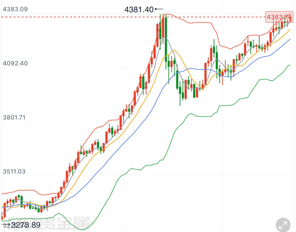 早盘黄金继续冲高,但仍面临上方压力,上方重点关注4370一线,未突破可大胆做空。