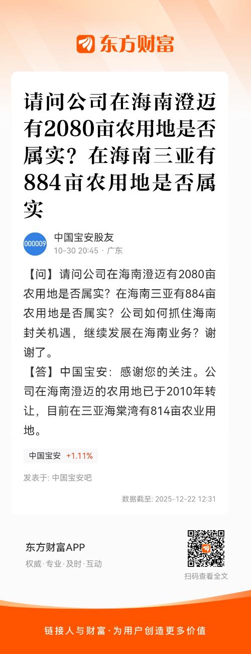 请问公司在海南澄迈有2080亩农用地是否属实?在海南三亚有884亩农用地是否属实?公司如何抓住海南封关机遇,继续发展在海南业务?谢谢了。