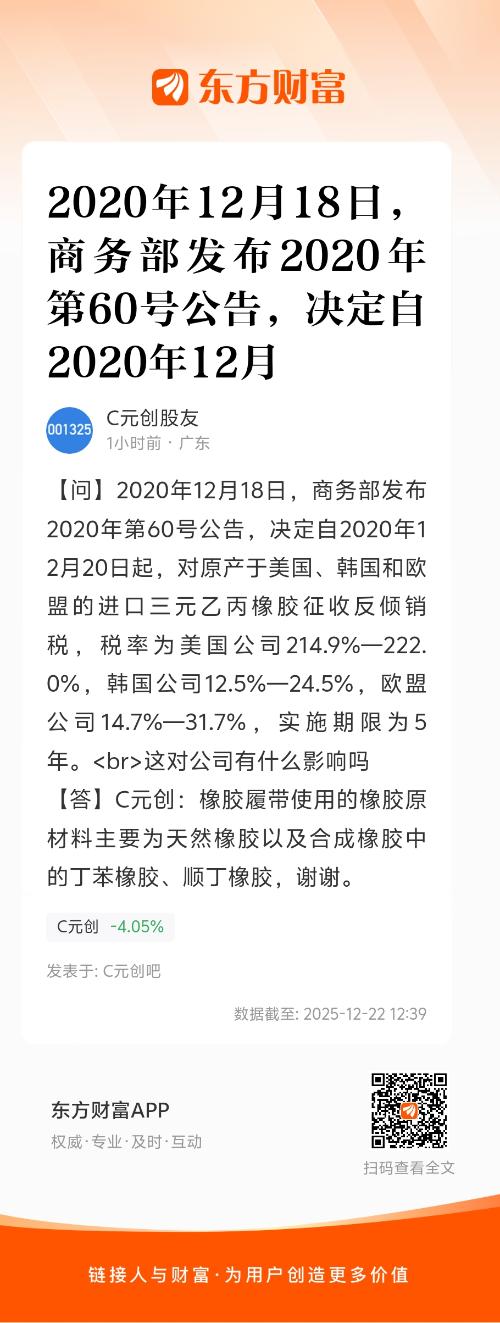 2020年12月18日,商务部发布2020年第60号公告,决定自2020年12月20日起,对原产于美国、韩国和欧盟的进口三元乙丙橡胶征收反倾销税,税率为美国公司214.9%—222.0%,韩国公司12.5%—24.5%,欧盟公司14.7%—31.7%,实施期限为5年。