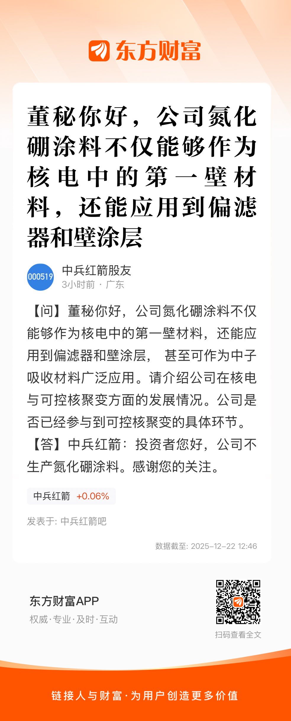 董秘你好,公司氮化硼涂料不仅能够作为核电中的第一壁材料,还能应用到偏滤器和壁涂层, 甚至可作为中子吸收材料广泛应用。请介绍公司在核电与可控核聚变方面的发展情况。公司是否已经参与到可控核聚变的具体环节。