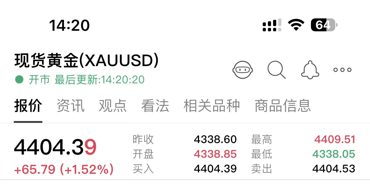 黄金现价都到4404了,直接空就完事!防守设在4408,这位置不破就拿着,目标先