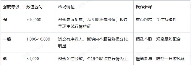 重要提示:强度值需结合基本面使用案例:例如某板块因突发政策强度值飙升至15,000,但行业景气度下行→谨防冲高回落