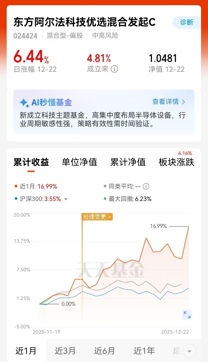 科技赛道太亮眼!东方阿尔法科技优选混合C单日净值涨6.44%拿下同类第一,半导体