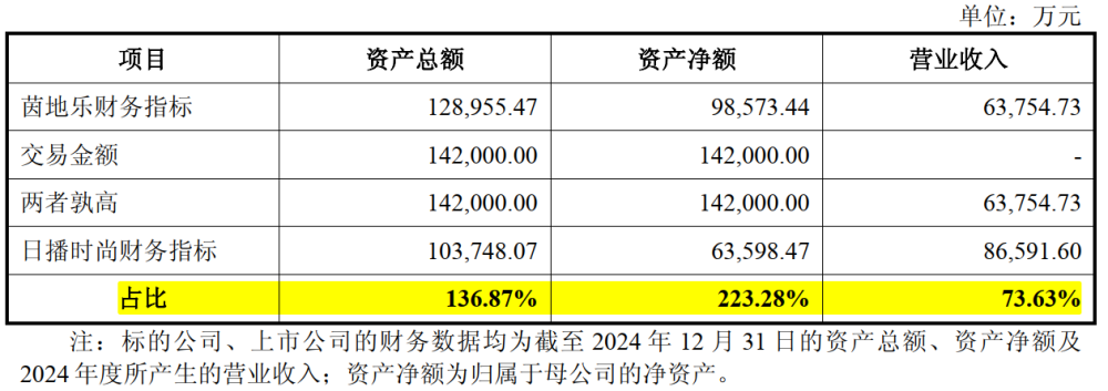 由上表可知,茵地乐的资产总额、资产净额均超上市公司100%,营收占比为73.63%、购买资产发行的股份数量占比不足70%,以孰高原则取值,此次交易构成重大资产重组。