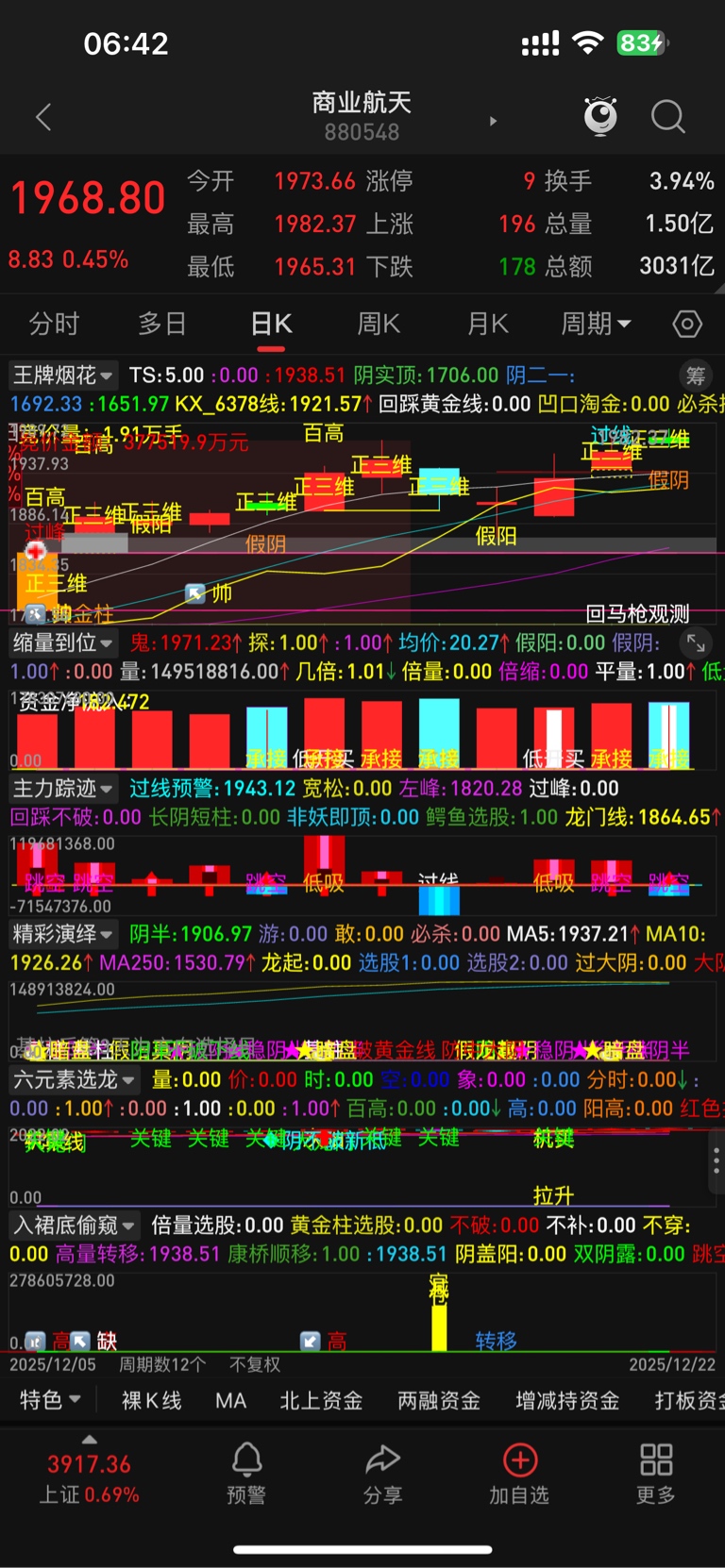 每个人炒股都应构建自己的一套操作体系,不要被市场大大小小的消息影响判断,要有自己的思路加以整理分析,昨天海南自贸区免税概念大爆发有二十多个涨停板今天看延续,商业航天依然有十个涨停板汰弱留强看延续,一般零售板块只剩东百集团一根独苗但技术层面是百高过顶突破高量安全线还没走完昨天是正常的调整。#炒股日记# #复盘记录# #收盘点评#