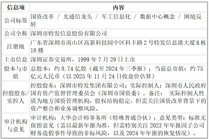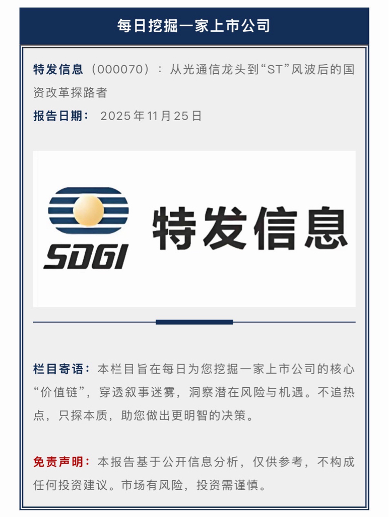 每日挖掘一家上市公司:特发信息(000070)投资有风险盈亏自负