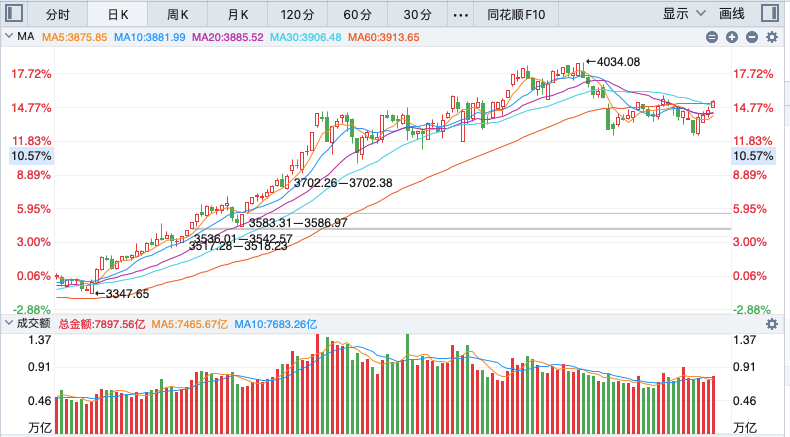昨天估值再站上3900点以后,那么从今天的走势来看,是否能够拿下3950点位变得尤为关键,这是明年开春是否能够正式站上4000点开启上攻结构行情的核心。其次则是目前市场的成交量同步放大阶段,需要重点留意过去几个交易日,成交量是否能够有效稳定在2万以上。最后则是现在的市场当中的主线商业航天是否还具有延续性,以及今天无人驾驶是否会出现分化当中走出头部个股继续连板的走势,其次则是当前的CP O3巨头还能否走趋势,将会是这一轮股指能否走延续行情的核心。