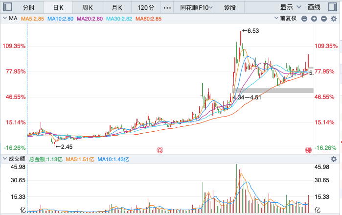 白银有色:昨天个股出现快速封板走势,核心原因是目前稀有金属价格不断刷新新高,黄金、白银等价格不断走强。受此影响,个股连续创出历史新高,核心原因是下游需求整体提升,大宗有色金属近两年一直处于大牛市行情,这也是这一轮个股能够走出月线级别大行情的关键。但是,标的自从上一轮行情以后一直都处于中枢震荡整理阶段,昨天第一次跳出了中枢震荡箱体平台。公司目前来讲具备了铜、铅、锌、金、银等多种类的稀有金属,所以所有产品的涨价都会体现在公司业绩上。技术结构形态目前突破了日线级别中枢,开始挑战月线级别的高点,最终走出三连板的突破结构形态。