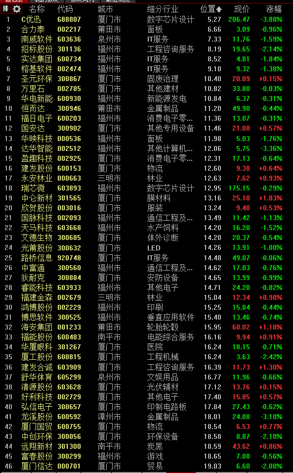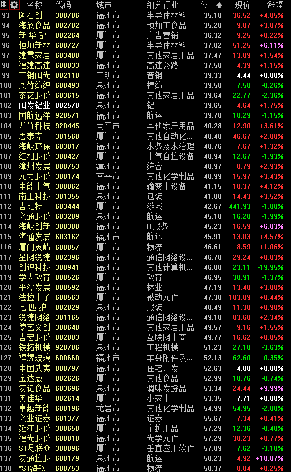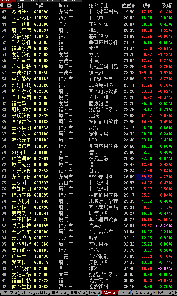 福建板块中,位置占绝对优势的个股,高达138只,这也是福建板块接下来会成反弹领航者的资本