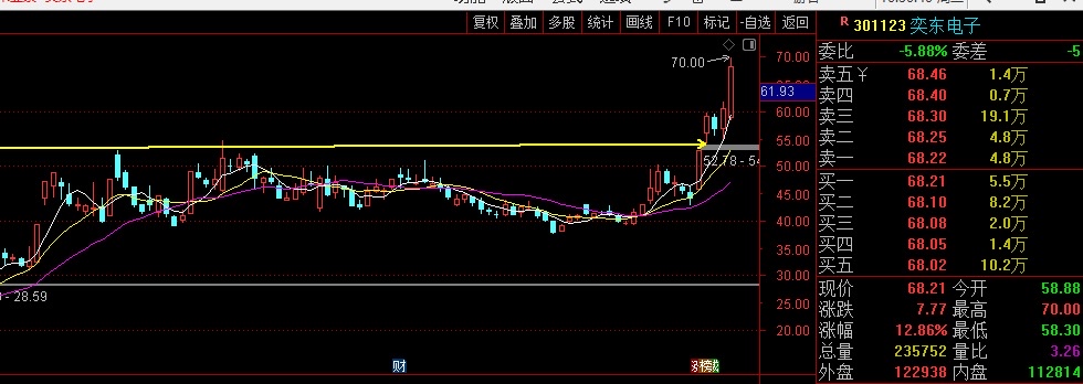 【奕东电子】缺口上方震荡,5日线为支撑,大涨暴涨。