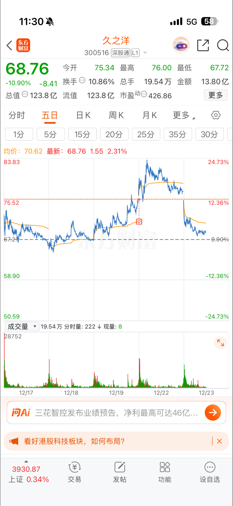 20251223 ,最难的还是长线,九之洋短线走弱竞价没跑,想格局下就给个大面,现在的支撑位希望撑住。