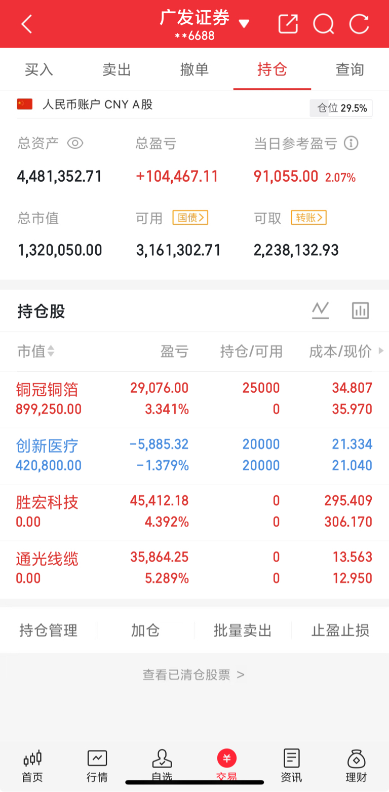 今天进了点铜冠铜箔,目前小赚,创新医疗一股没动!#实盘记录#