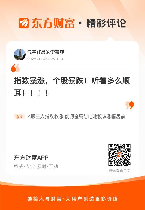 指数暴涨,个股暴跌!听着多么顺耳!!!!我在《A股三大指数收涨能源金属与电池板块