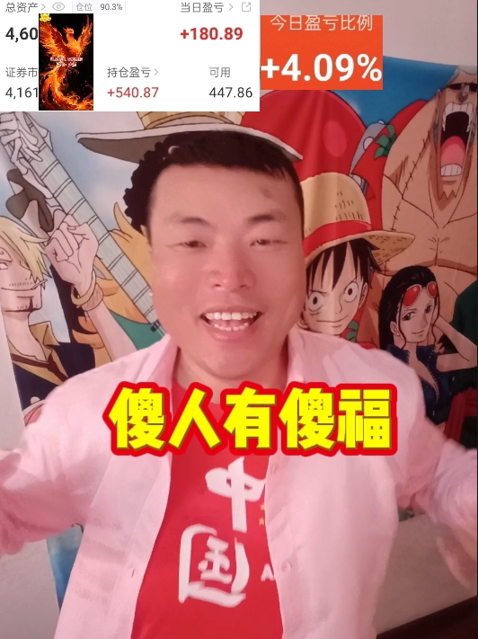 +4.09%赚米了,大宝露出自信的表情傻笑!实盘表情