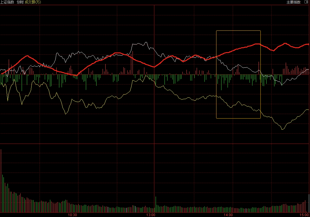 今天上午振荡上涨还算符合,下午中间上涨时间段(画黄框部分)反了,没涨。