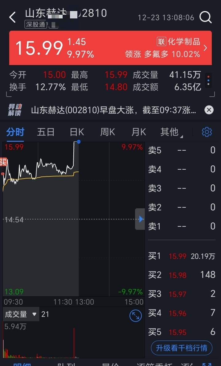 今早开盘进的低位股山东hd喜提涨停板