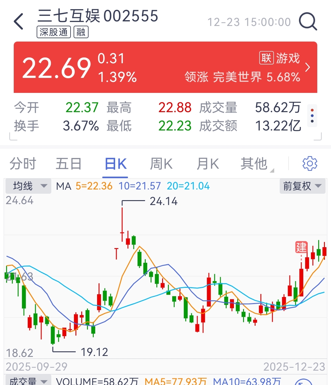 上周我选了三个股票,三七互娱,高德红外,完美世界,然后我买了三七互娱,因为当时三七互娱长的好,结果是高德红外涨停了,完美世界大涨,就三七互娱在哪磨磨唧唧的涨。