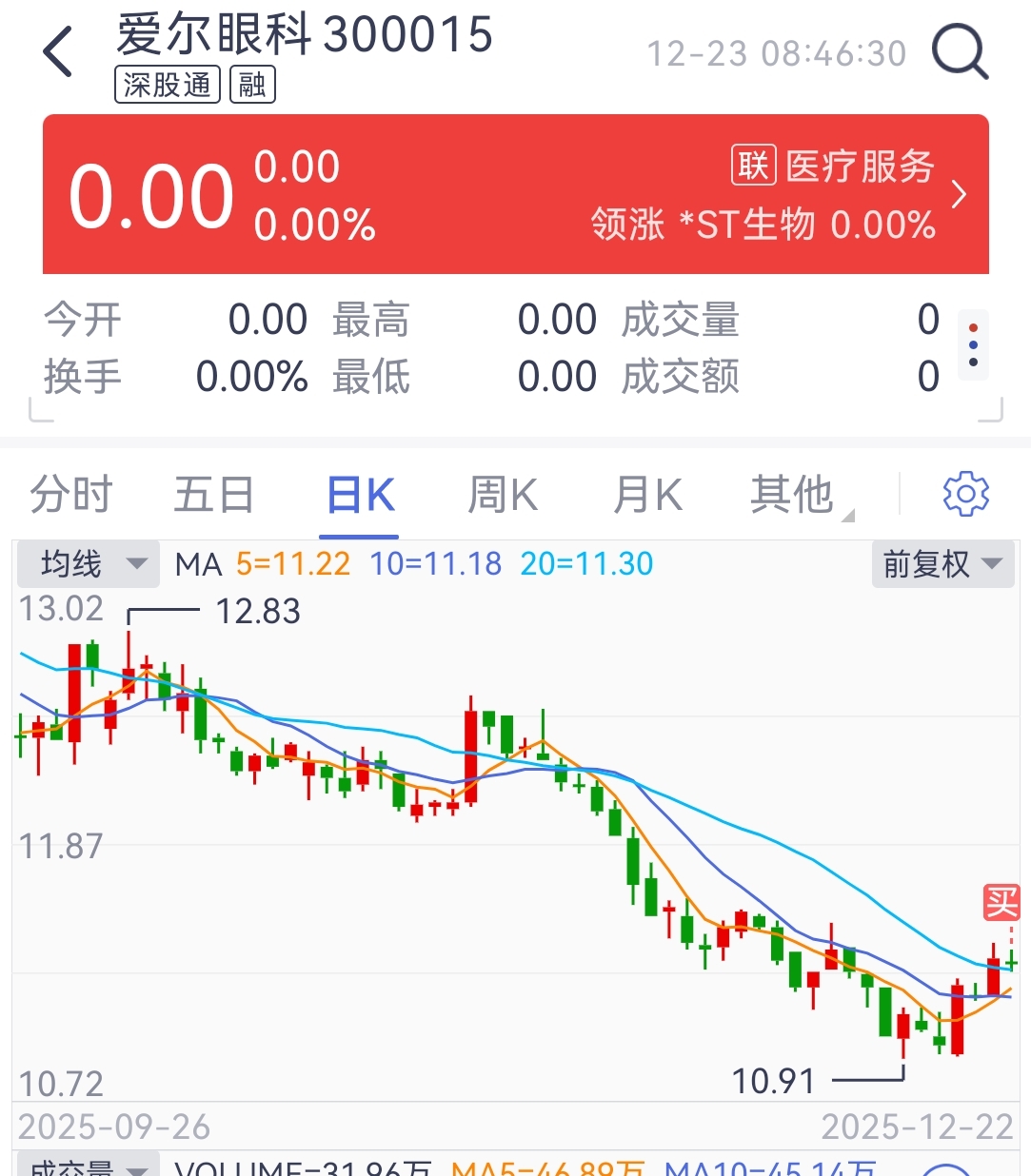 然后我昨天买入爱尔眼科,今天大就大跌,我这么牛比。吗?买什么跌什么,我也是服了。
