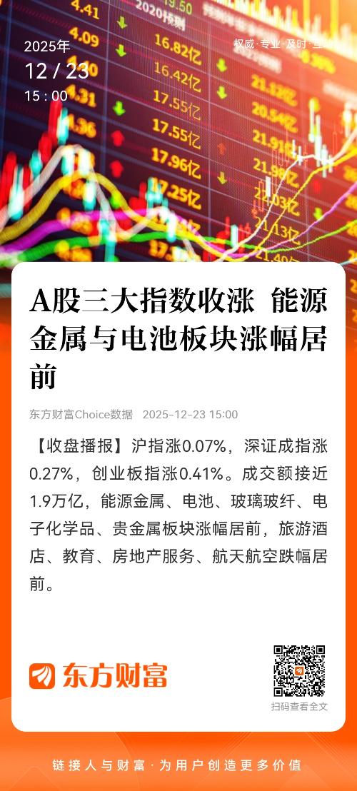 A股三大指数今日集体红盘报收,沪指涨0.07%,收报3919.98点;深证成指涨0.27%,收报13368.99点;创业板指涨0.41%,收报3205.01点。沪深两市成交额达到18998亿,较昨日小幅放量379亿。