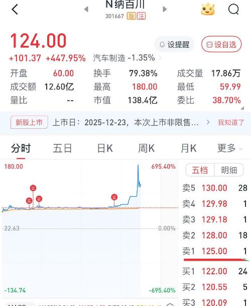 交易所2025年12月23日公布的交易公开信息显示,纳百川因成为无价格涨跌幅限制的证券上榜。纳百川当日收报115元,涨跌幅408.18%,偏离值408.17%,换手率86.16%,成交额14.54亿。