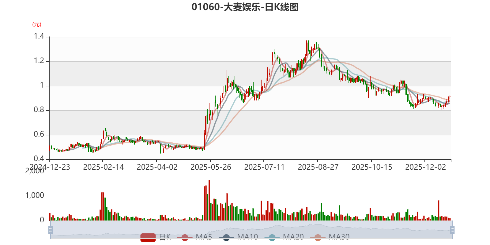中证智能财讯大麦娱乐(01060)12月23日披露2025-2026年中期报告。截至9月30日的6个月内,公司实现营业收入40.47亿元,同比增长32.67%;归母净利润5.2亿元,同比增长54.35%;据报告显示,大麦娱乐基本每股收益为0.0175元,平均净资产收益率为3.17%。