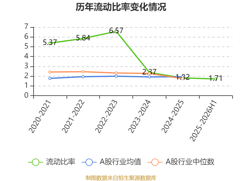 报告期内,公司流动比率为1.71,速动比率为1.71。