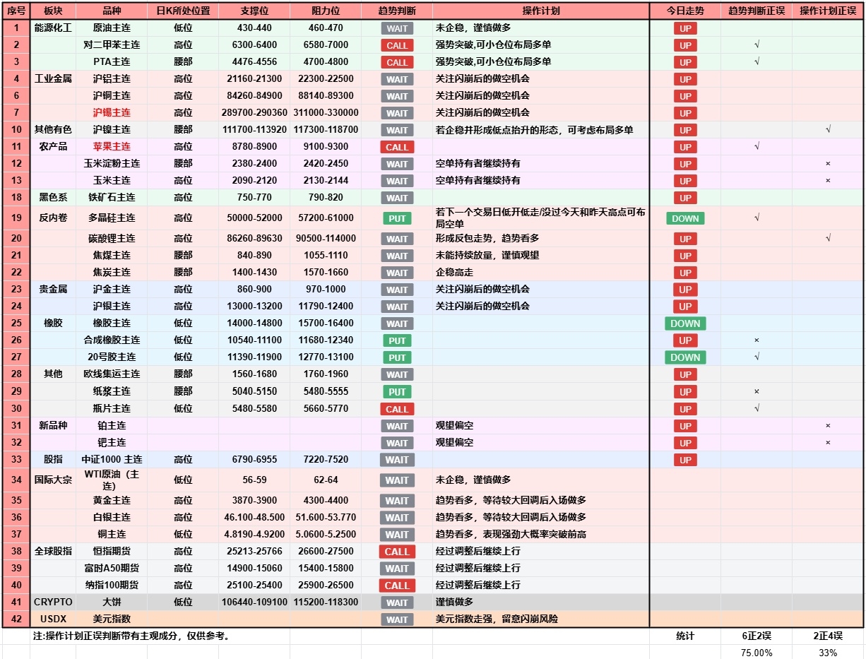 图一:【20251222期货品种复盘】趋势判断正确率82.35%,操作计划正确率100%