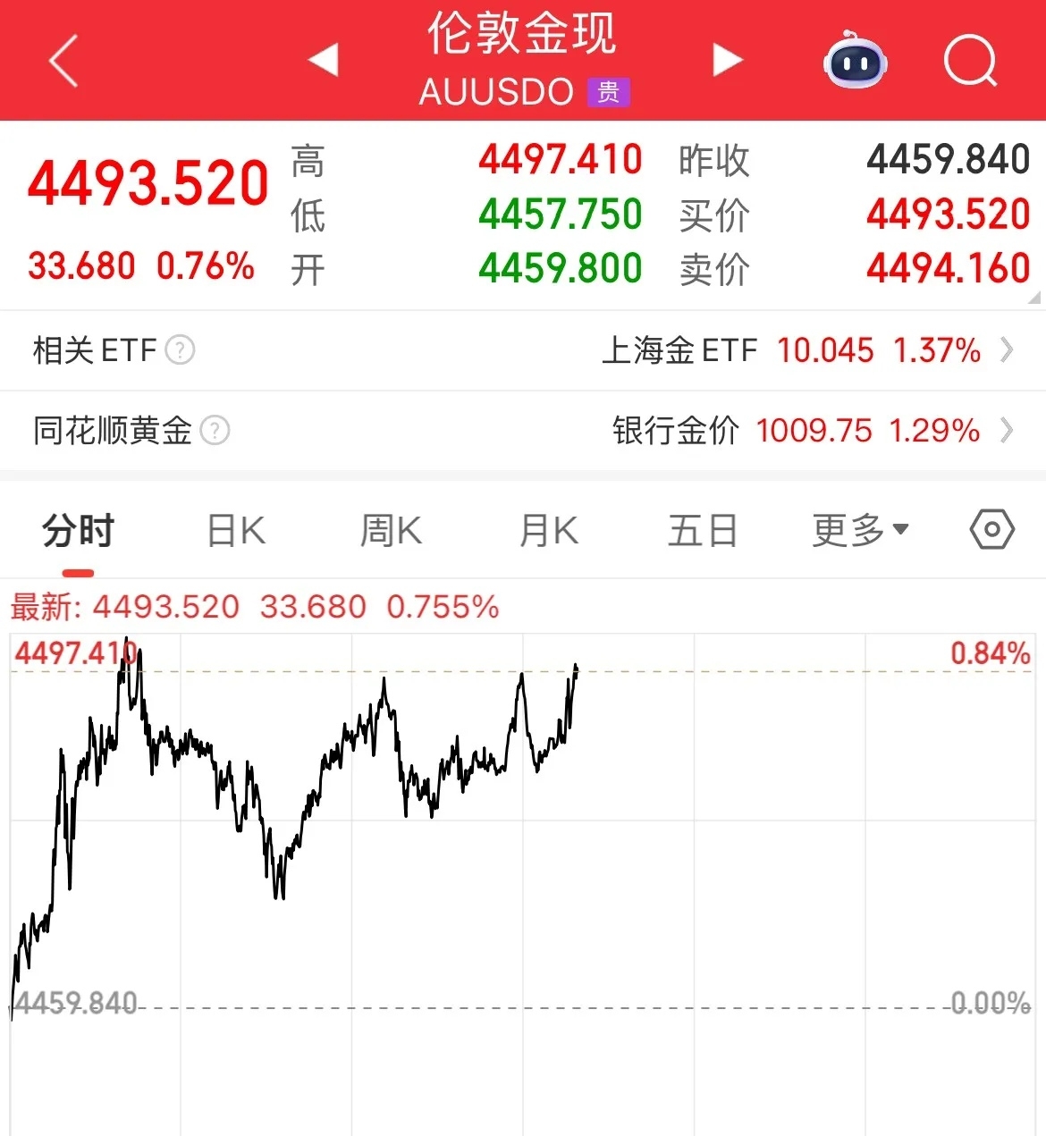 黄金今晚能不能突破4500美元/盎司,白银刚刚正式突破70美元关口了,也不远了,市场资金避险情绪升温,资金蜂拥而上啊。