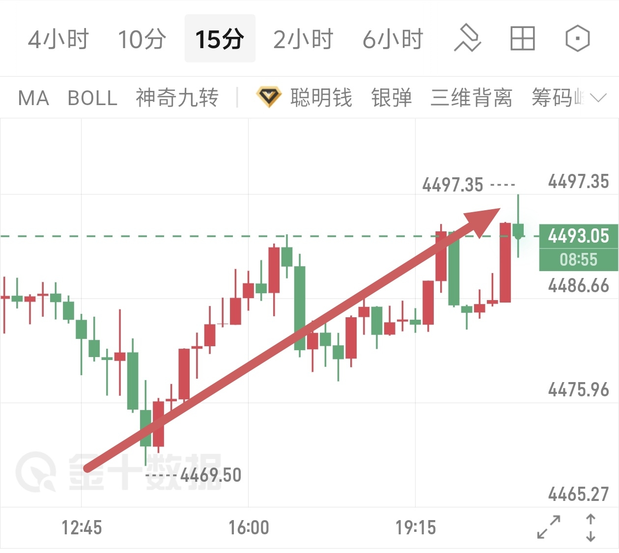 黄金早间说的逢低进哆,4469哆单入局,最高来至4497,可收获28点空间