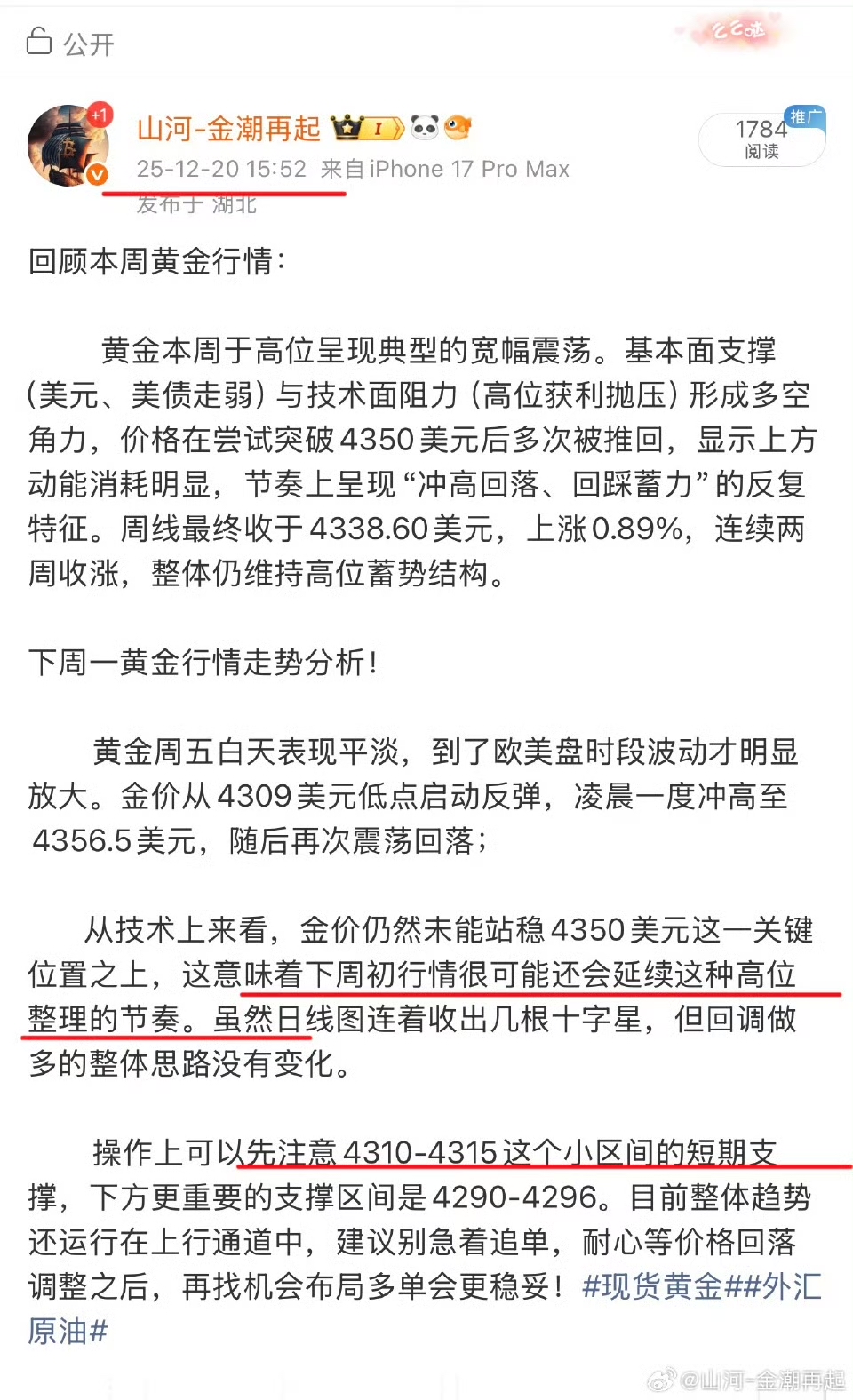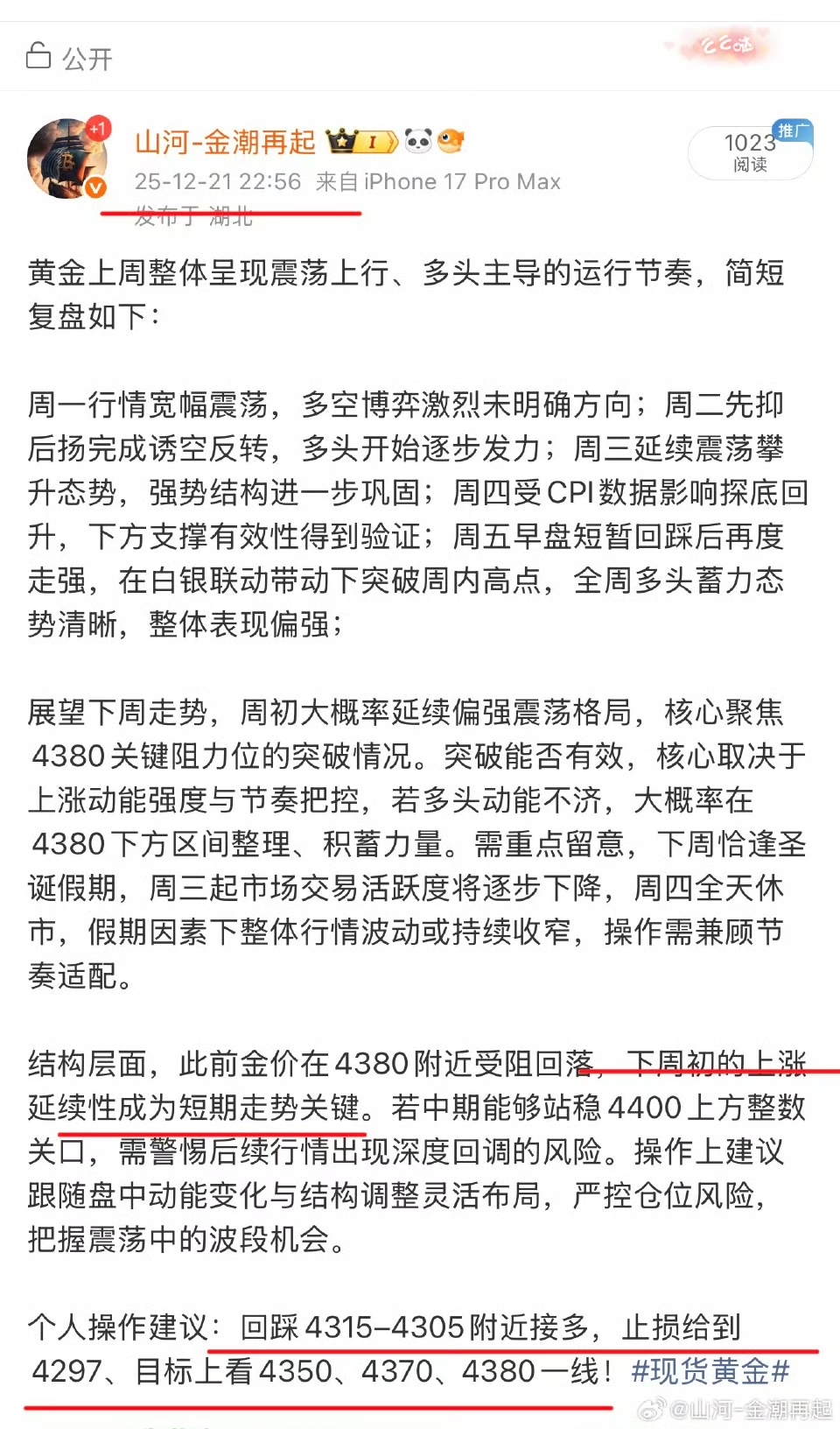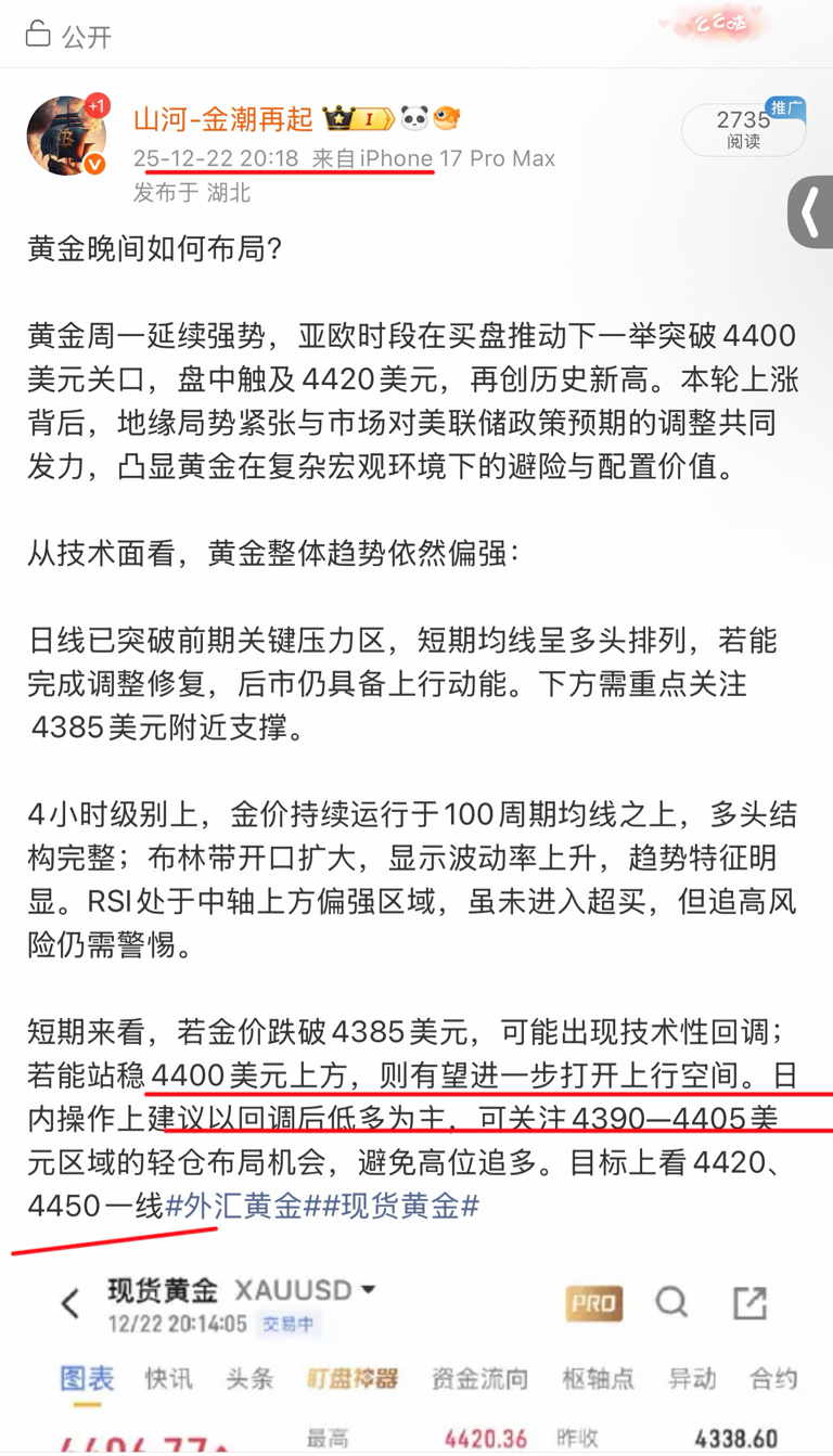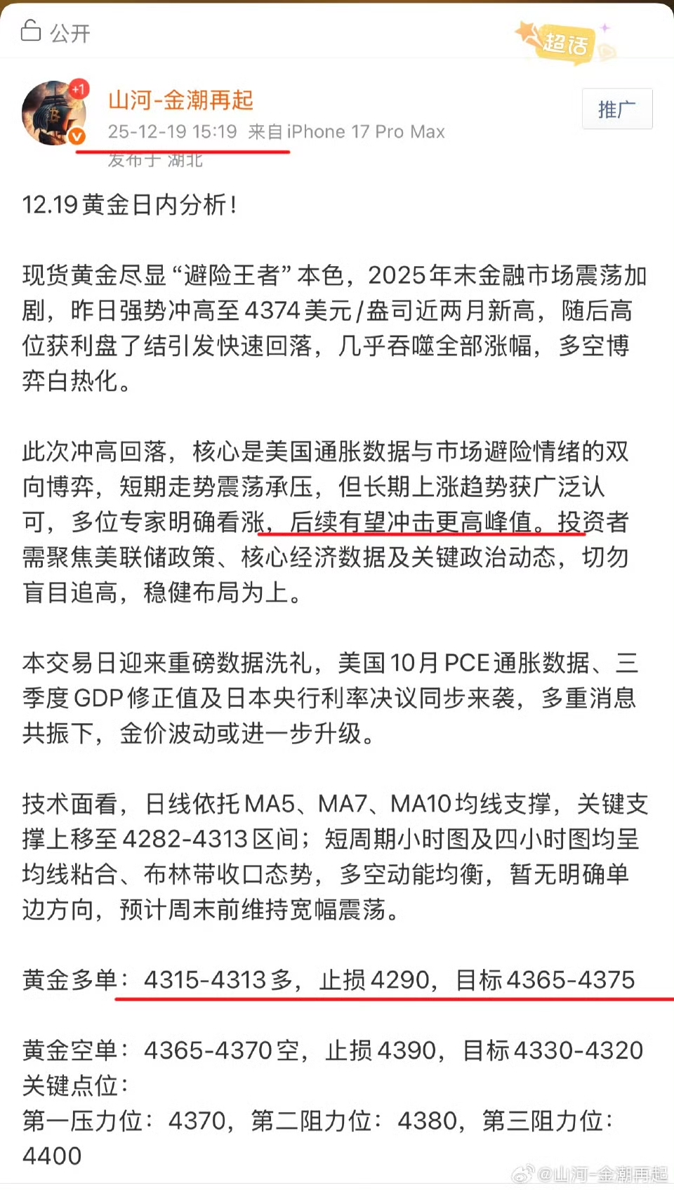 黄金在上周五就开始长线布局多单,自4315下方一直坚定看涨,最高目标位给到445