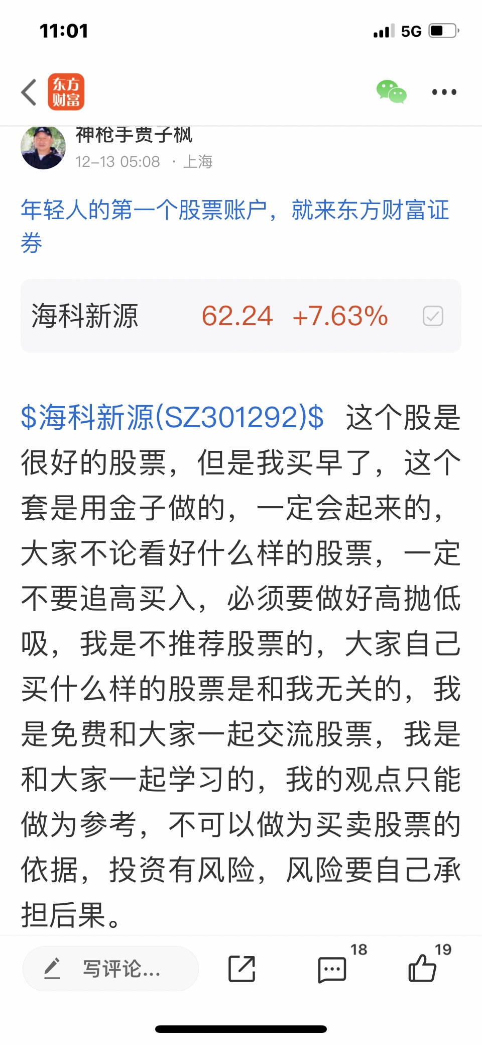 海科新源我在股票最低的时候和大家说过,大家不要怕,这个股的套是用金子做的,我在上