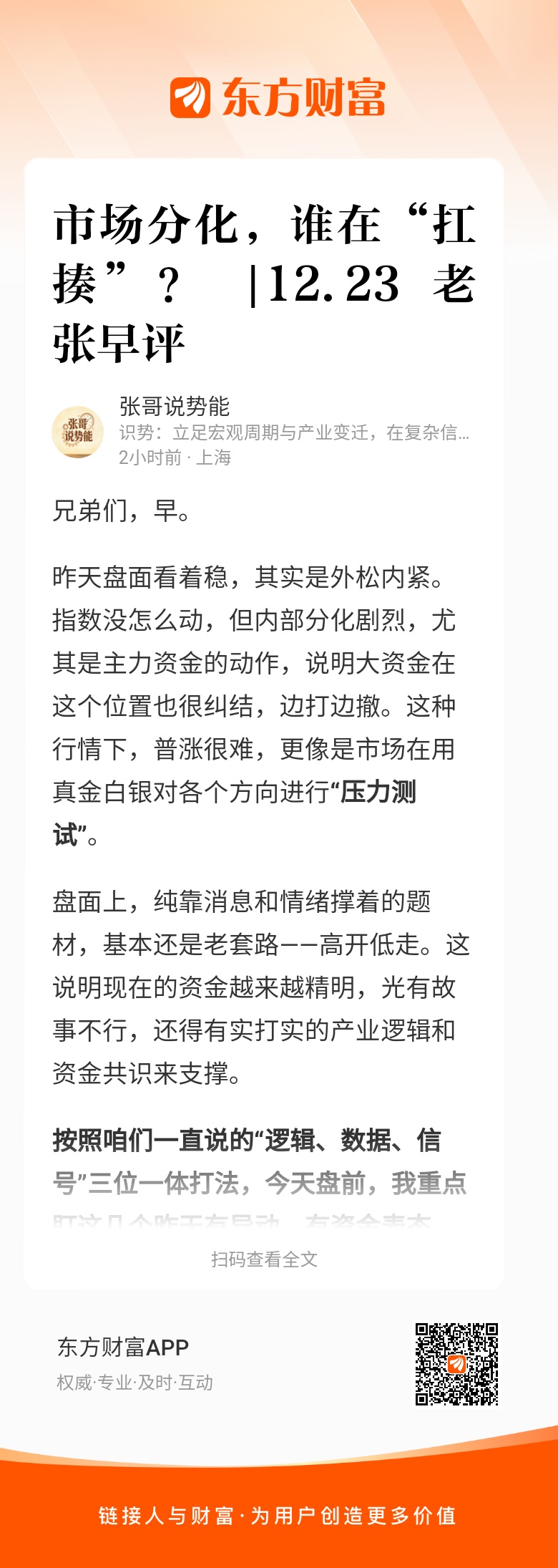 (重要声明:以上全是老张个人的盘前瞎琢磨和交易计划记录,提到的所有个股都是作为分析案例,纯属个人思路整理,绝不构成任何投资建议。股市风险巨大,各位兄弟务必独立思考,为自己的每一笔交易负责。)