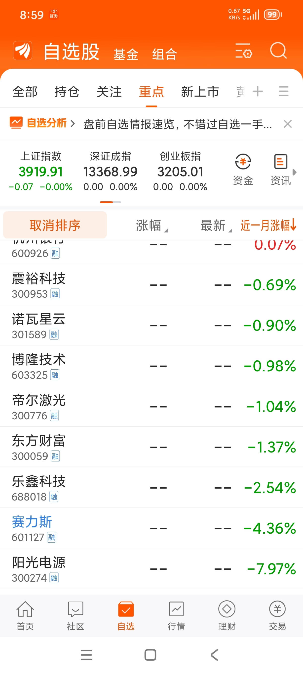 涨了三天,最近一个月涨跌幅在20多只自选股依然排最后一个
