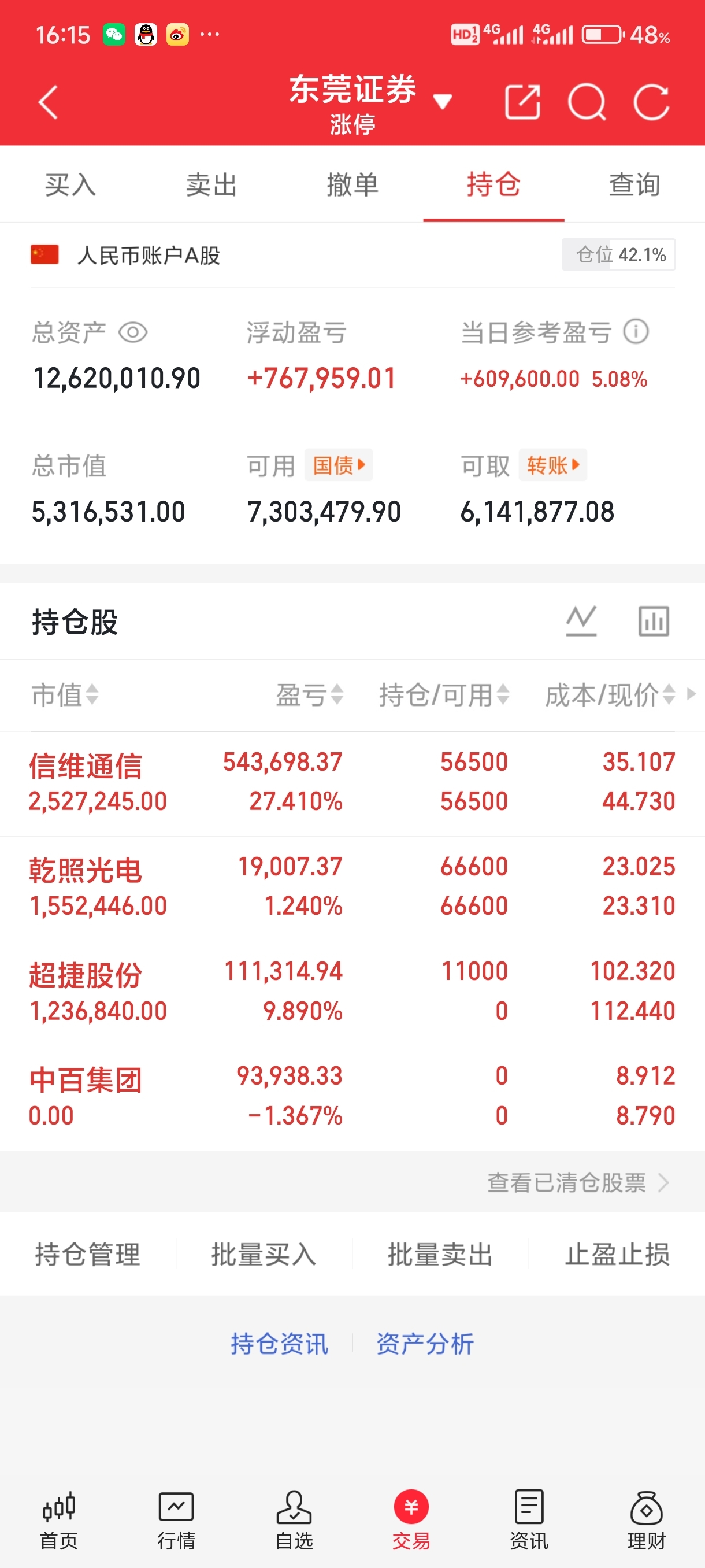 目前持有:信维通信 超捷股份 乾兆光电。