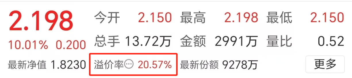 LOF既可以像基金一样按净值申购和赎回,又可以和股票一样按价格买入卖出。LOF的溢价率即指价格超过净值的幅度,如图,溢价率20.57%说明此时价格比最新净值多20.57%,折价率则刚好相反。