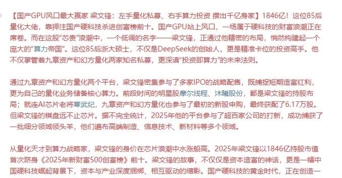 太猛了!梁文锋:左手量化私募、右手算力投资,攒出千亿身家。跟量化比起来,机构,游