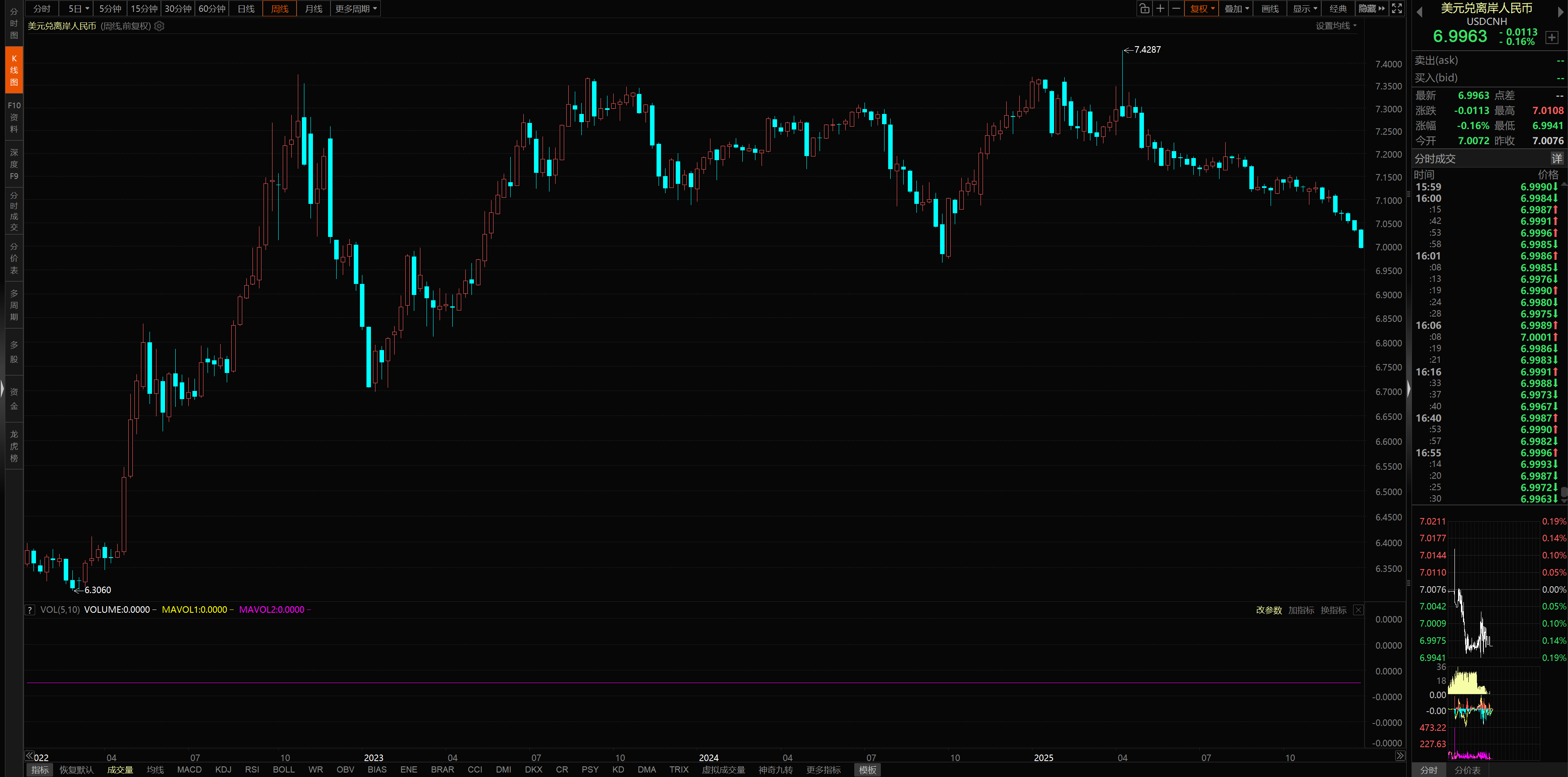 今天下午美元破7,实现我的预测。四月关税战以来,跌幅6%。2026年美元存在继续