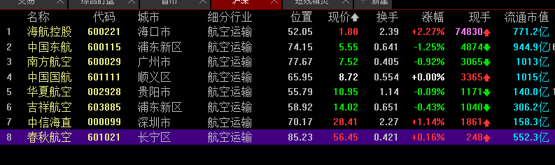 再看航空运输类个股,同样,日后,海航控股同样不可能股价再垫底