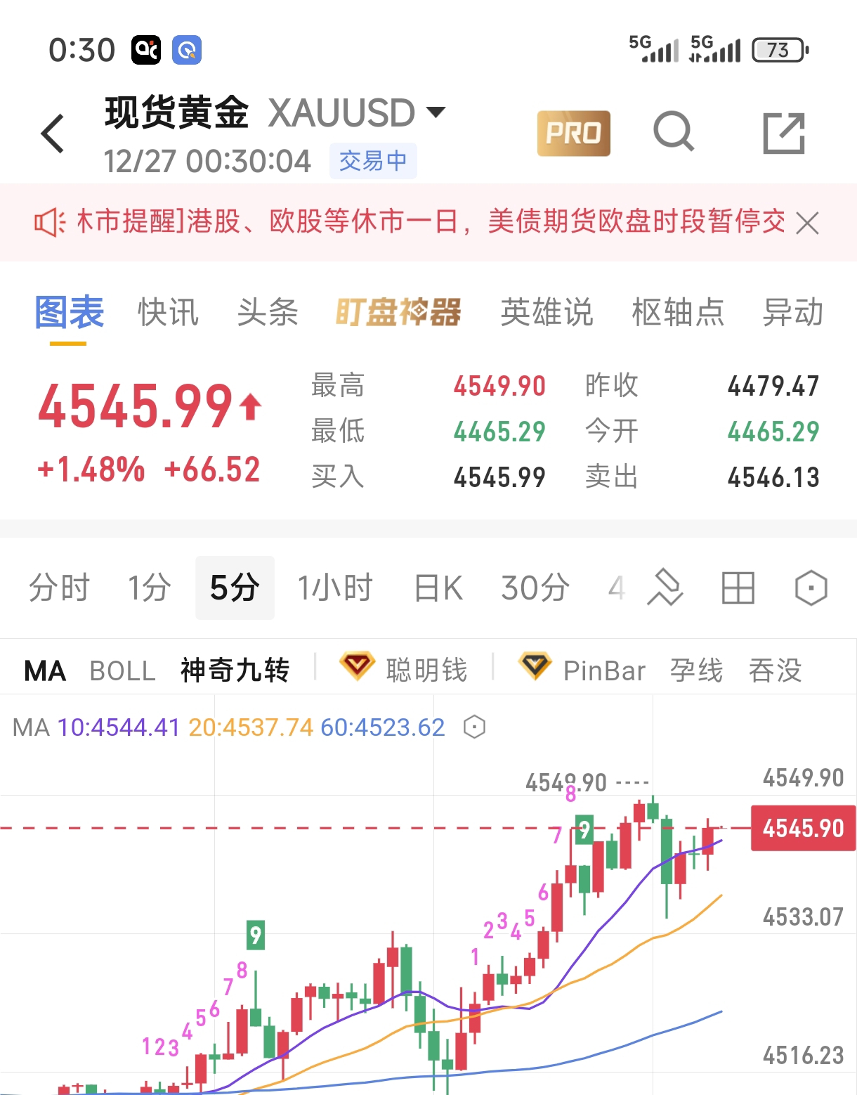12.27午夜黄金分析:老铁们我在强调一遍,我只看空,不是头铁,我不想挂在最高位