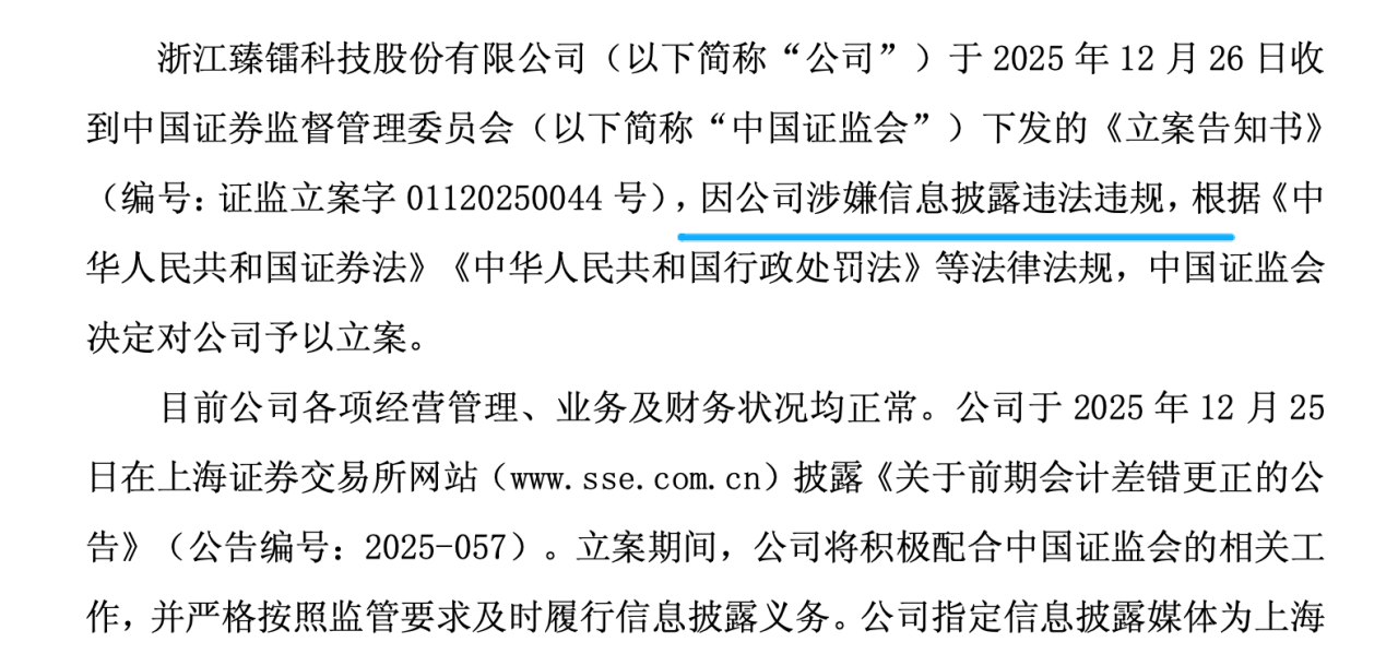 臻镭科技这个公司因为涉嫌信息披露违法违规导致的。